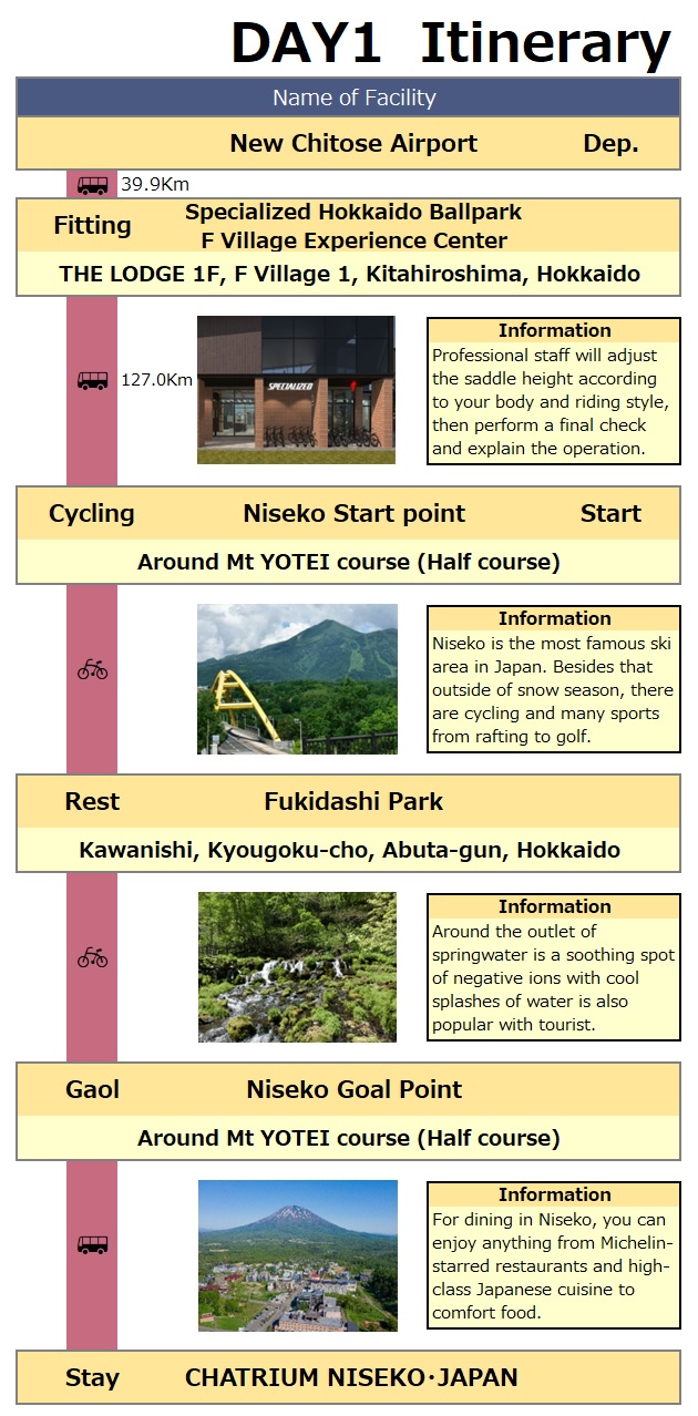 Included in Tour Fare : accommodation fee, Guide rider fee, 'SPECIALIZED' Rental cycle fee , Support vehicle(Private taxi Alphard or Hiace) fee, Expressway tolls, Tax.
