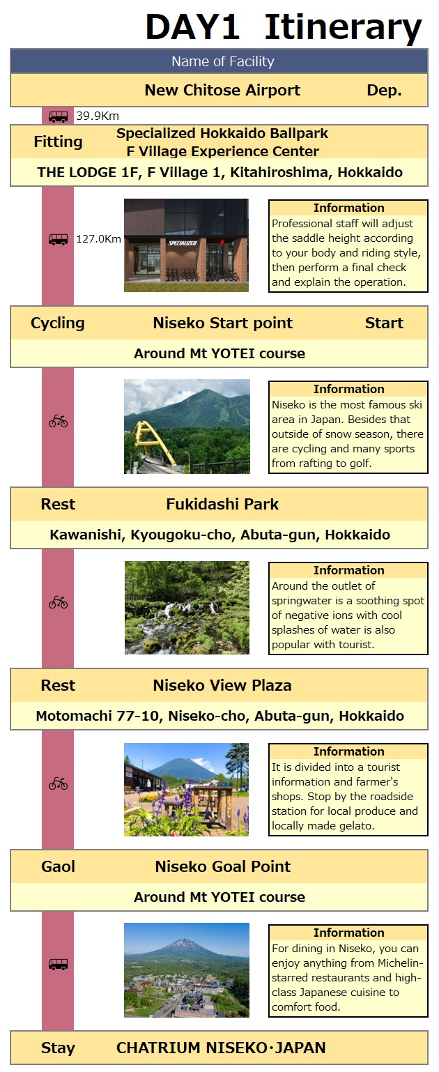 Included in Tour Fare : accommodation fee, Guide rider fee, 'SPECIALIZED' Rental cycle fee , Support vehicle(Private taxi Alphard or Hiace) fee, Expressway tolls, Tax.