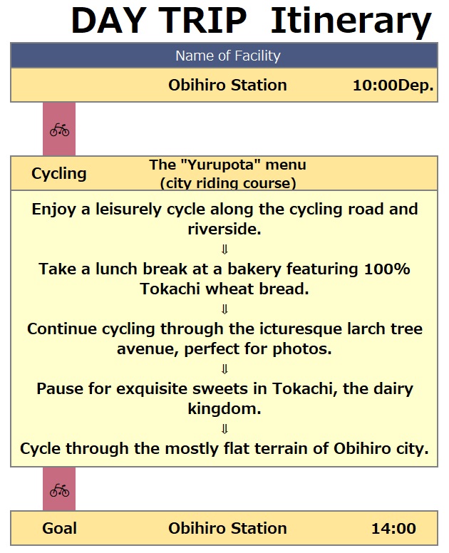 It's an enjoyable city cycling tour starting and ending at Obihiro Station that's perfect for beginners and offers the option to ride an electric assist bicycle (E-bike) for a comfortable experience. Road bikes are also welcome.
