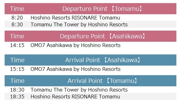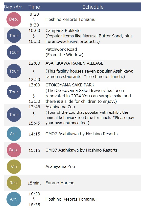 *Passengers boarding or dropping off at OMO7 Asahikawa by Hoshino Resorts cannot visit at Asahiyama Zoo.