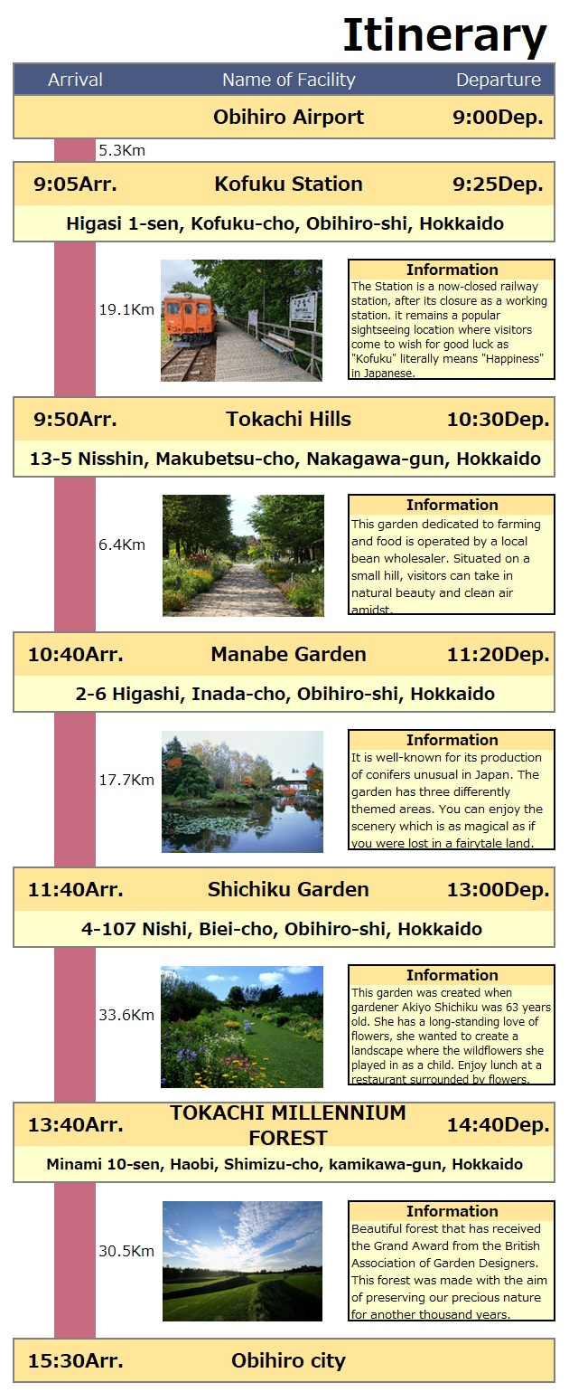 *When using a chartered taxi, it is possible to arrange a itinerary according to your wishes. Please contact us from the request for private taxi form.