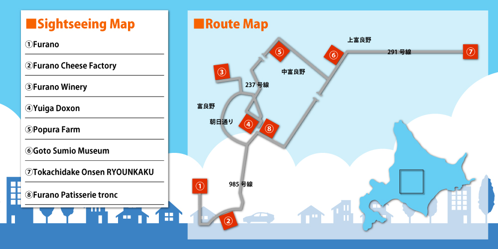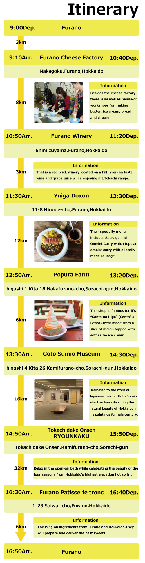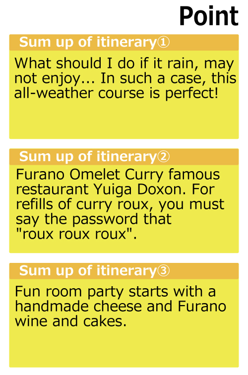 Day trip Dep. / Arr. Furano. Recommended by our staff day trip from minor tourist spots to must-see tourist spots.