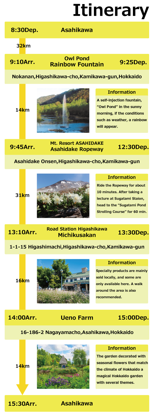 Day trip Dep. / Arr. Asahikawa. Recommended by our staff day trip from minor tourist spots to must-see tourist spots.