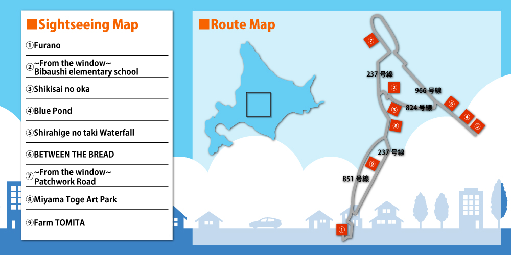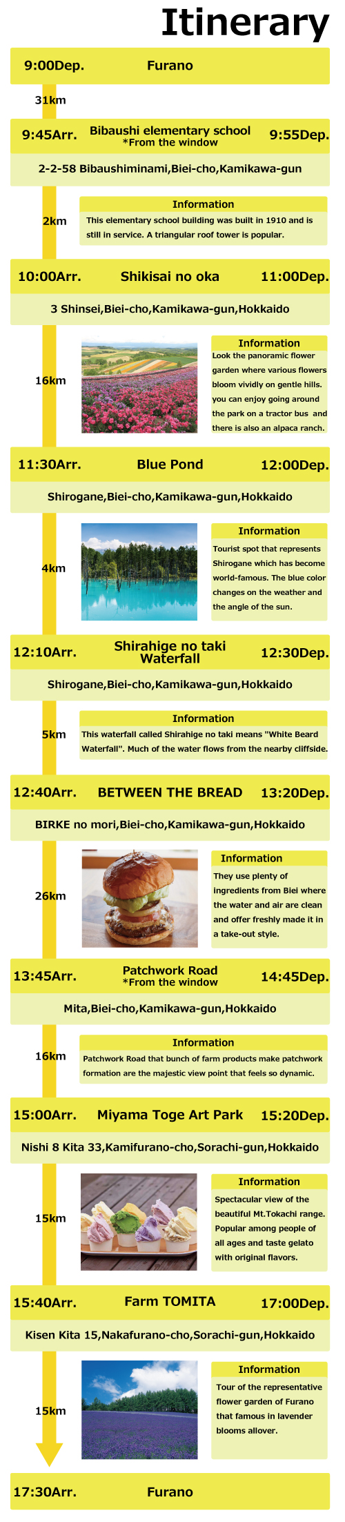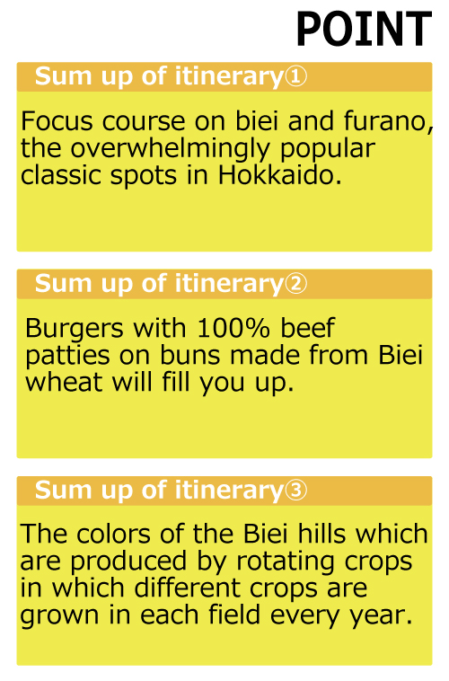 Day trip Dep. / Arr. Furano. Recommended by our staff day trip from minor tourist spots to must-see tourist spots.