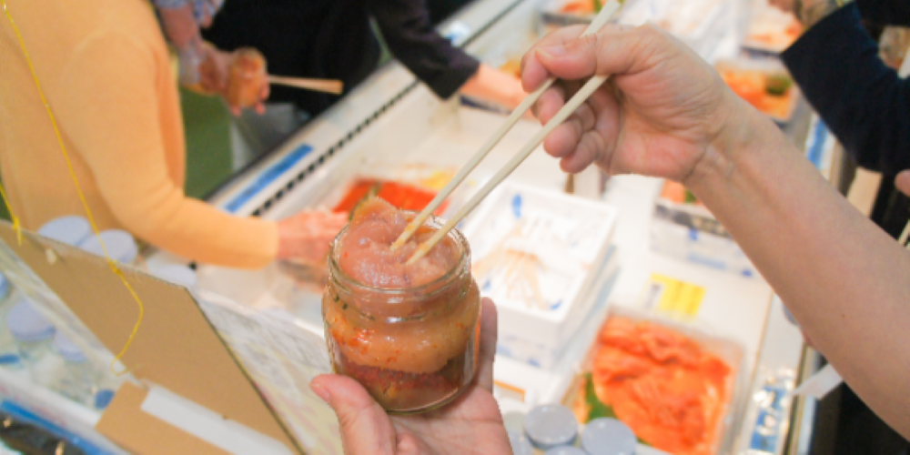 ②白老・虎杖浜と言えばたらこも忘れてはいけません。旅の最後は大漁番屋で「たらこ詰め放題」の体験!辛子明太子もありますよ。