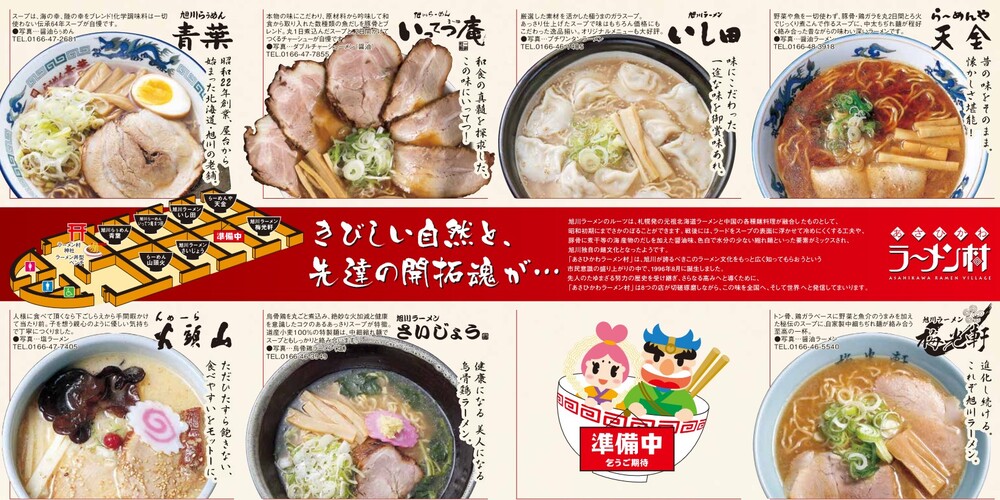 ②あさひかわラーメン村では旭川の名店が集結!北海道の三大ラーメンの一つである旭川ラーメンの味を楽しむことができます。