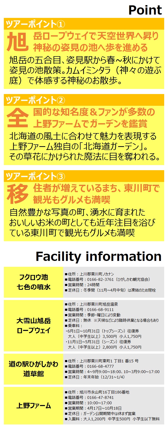 スタッフお勧めの旭川発着日帰り観光コース!旬な観光地から厳選マイナー観光地が目白押しです!