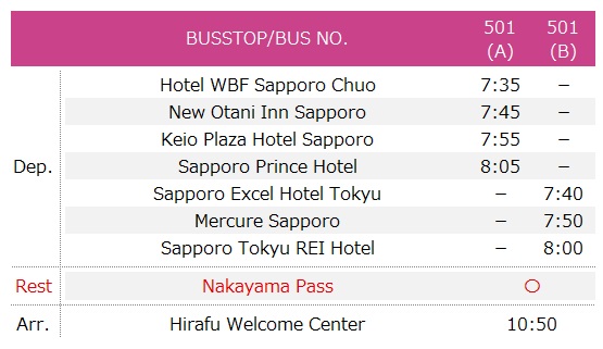 *We will inform you of an operating bus company as soon as it’s finalized. Please check the scheduled operating bus company from the following bus company list.