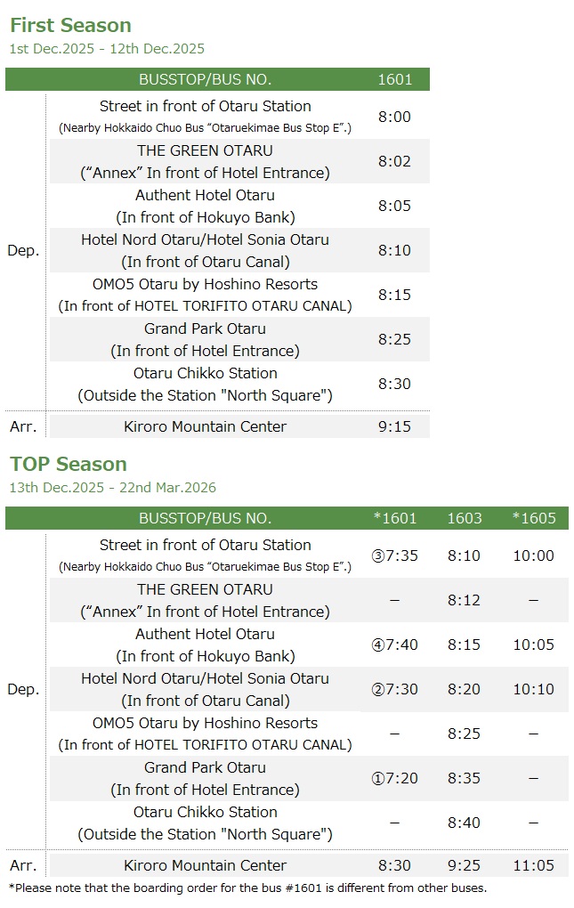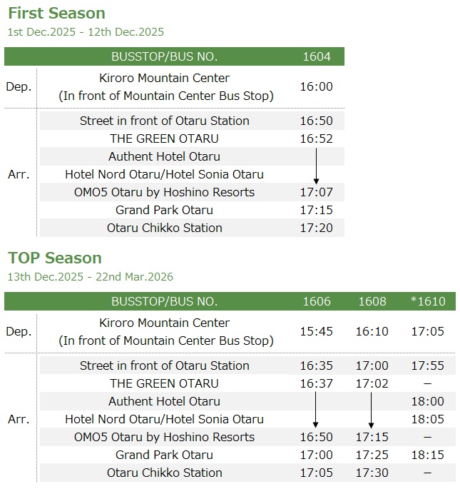 *Top Season #1605 & #1610 operate from 21st Dec.2025 to 22nd Mar. 2026.