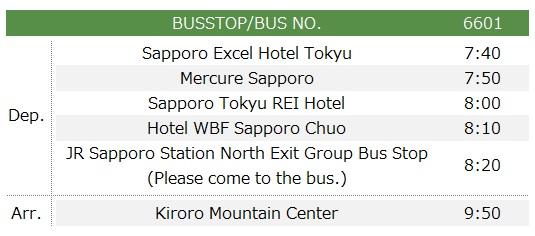 *If Kiroro Snow World (ski resort) is closed, there will be no alternative service.