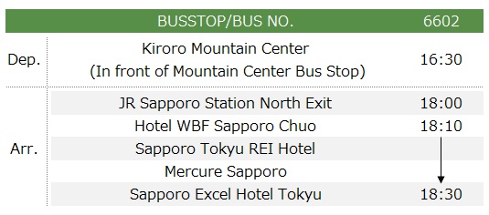 *If Kiroro Snow World (ski resort) is closed, there will be no alternative service.