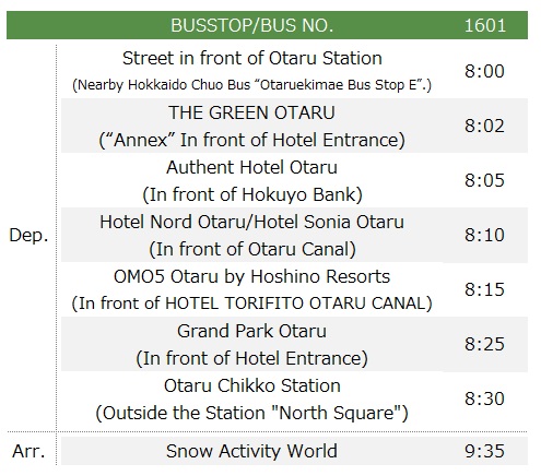*If Kiroro Snow Park is closed, there will be no alternative service.