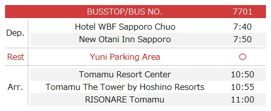 *You can get on/off at RISONARE Tomamu during only its business period.