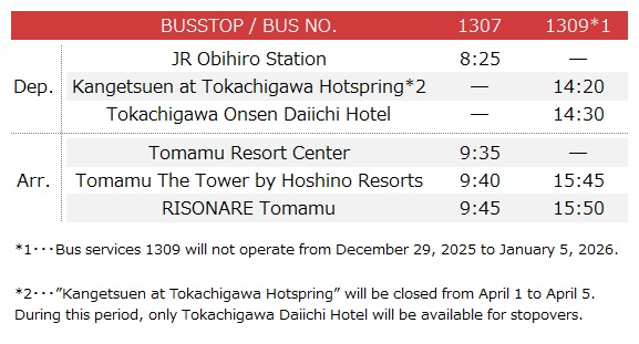 *If you make a round day trip to Tomamu Ski Area, it is convenient to get on/off the bus at Tomamu Resort Center.
