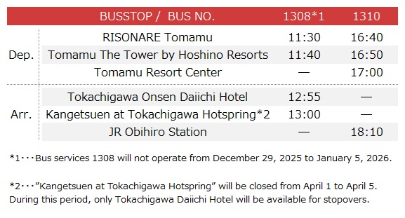 The bus runs everyday from 15th Dec.2025 to 15th Jan.2026 and 22nd Mar.2026 to 5th Apr.2026.