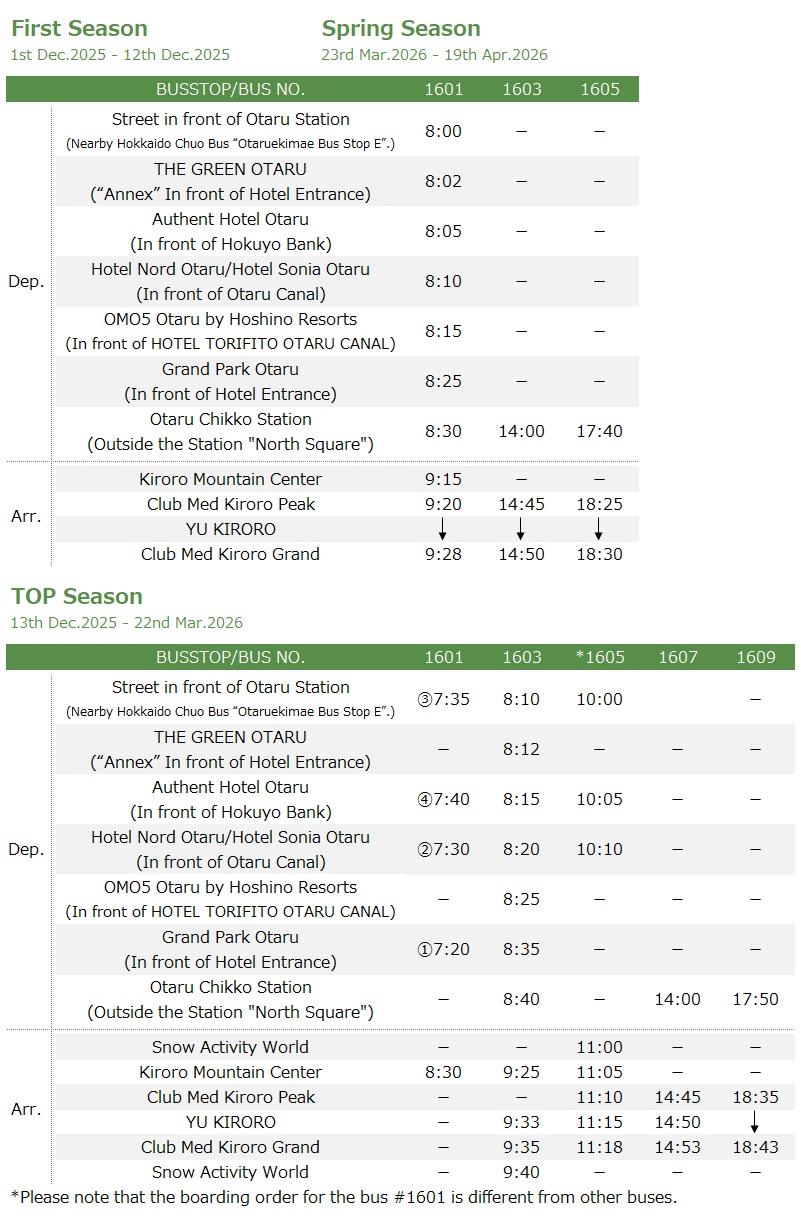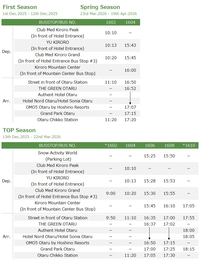 *Top Season #1602 & #1610 operate from 21st Dec.2025 to 22nd Mar. 2026.
