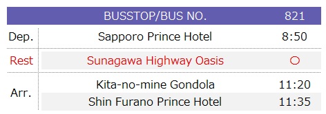 *When you get on the bus at Kita-no-mine Gondola, please be aware that the meeting place is Kita-no-mine Parking Area(Kita-no-mine Terminal 2nd Floor), not in front of Hotel Naturwald Furano.