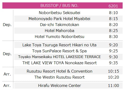 *If you make a round day trip to Rusutsu Ski Area, you can get on/off at only Rusutsu Resort Hotel & Convention.