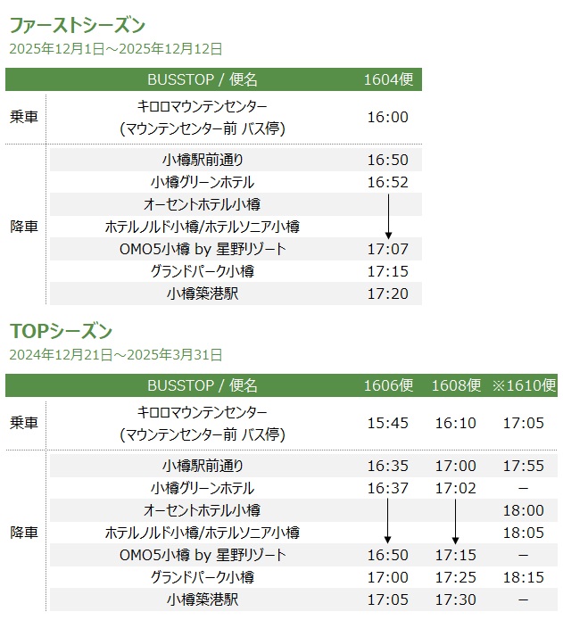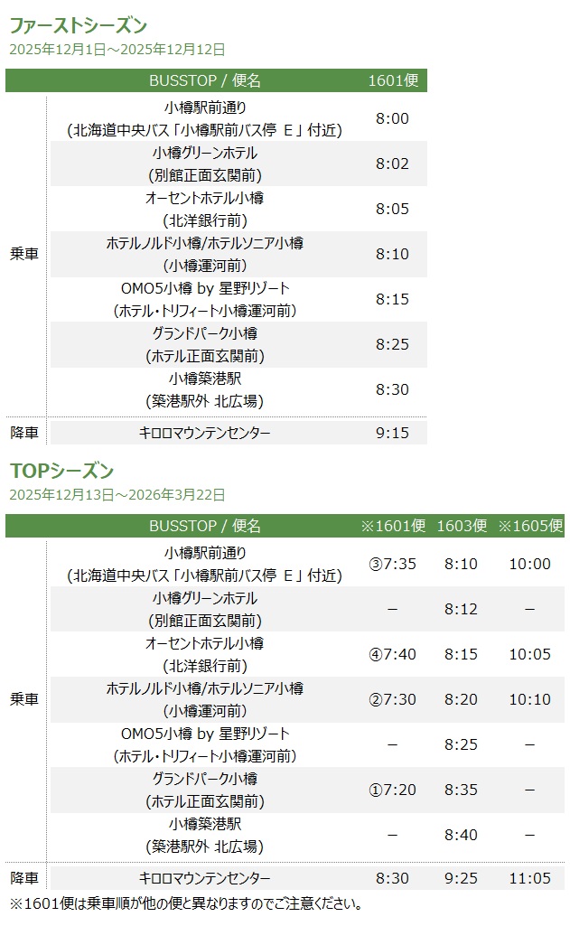※悪天候・道路状況等により遅延または運行中止になる場合がございますので予めご了承ください。