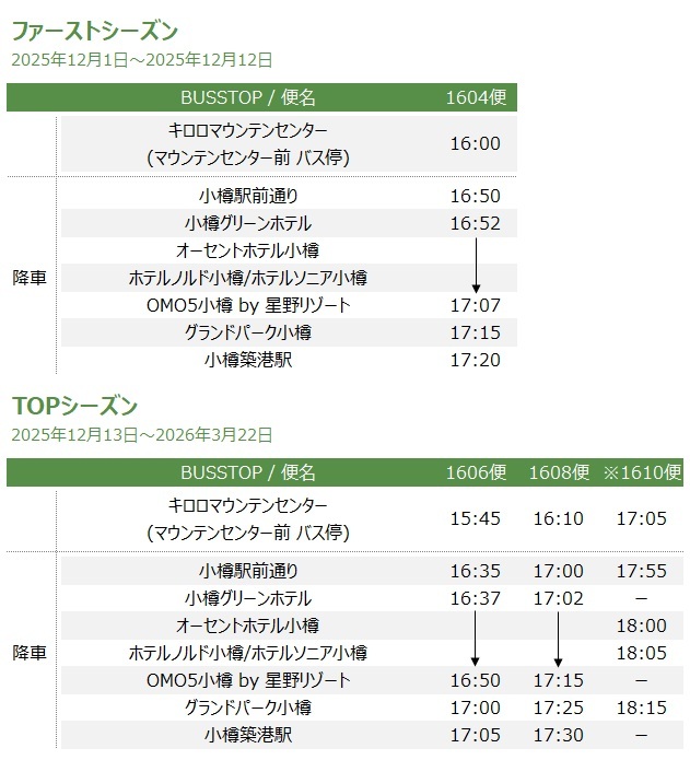 ※TOPシーズン1605便、1610便は2025年12月21日~2026年3月22日の運行となります。