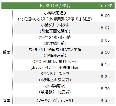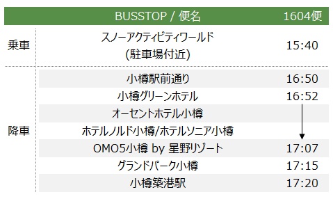 ※キロロスノーパークがクローズの場合、代替運行はありません。