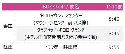 ■キロロ⇔ニセコ間 往復バス(1日目のみ)