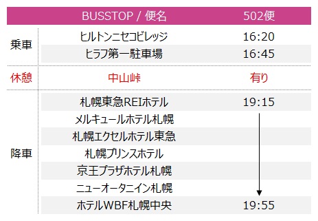※当便はルスツ、ザ・グリーンリーフ・ニセコビレッジ、ヒノデヒルズ・ニセコビレッジを経由する場合がございます。