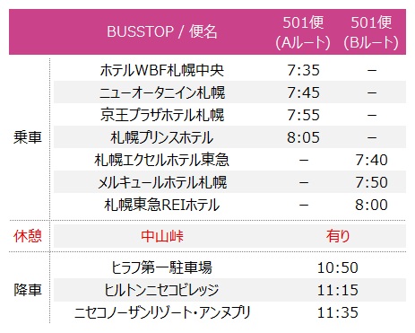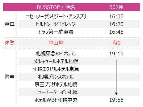 ※当便はルスツ、ザ・グリーンリーフ・ニセコビレッジ、ヒノデヒルズ・ニセコビレッジを経由する場合がございます。
