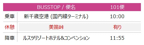※当便はウェスティンルスツリゾートを経由する場合がございます。