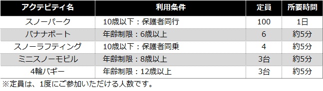 ■アクティビティには年齢制限を設定しているものがあります。事前にご確認ください。