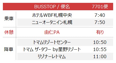 ※日帰りでスキー場をご利用の場合、トマムリゾートセンターでの乗降車が便利です。