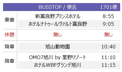 ※12/30~1/1は旭山動物園休園日の為、旭山動物園での乗降車はできません。