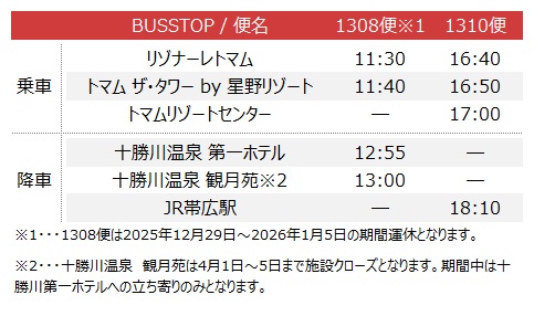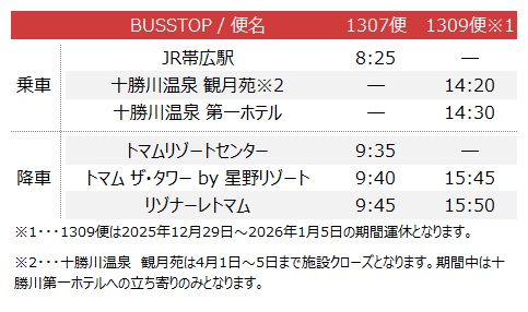 ※トマムスキー場を日帰りでご利用の場合は、乗降車場所にトマムリゾートセンターをお選びください。